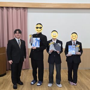 最後に、高校2年生の男の子が代表して、立派にお礼の挨拶をしてくれました。 帰りには、全員に「熊鈴」と「防犯用ライト」のプレゼントも!警察の皆様、お忙しい中、本当にありがとうございました。