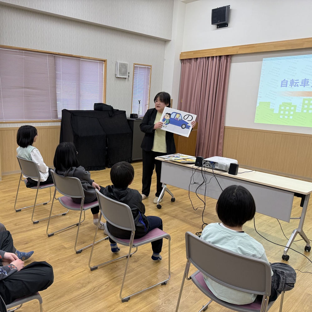 後半は交通安全について。 4月から自転車の交通規則が新しくなることもあり、罰則の話や正しい道路の走り方を改めて勉強しました。動画を交えたお話に、子どもたちも「事故って怖いんだね…」と身が引き締まる思いだったようです。