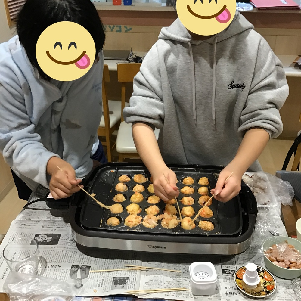 楽しみな「ごはん」の時間も特別です! 外食でちょっぴり贅沢をしたり、ホーム内では焼肉やたこ焼き、手巻き寿司パーティーを開催🍣自分たちで準備をする「自炊の練習」にも挑戦しました。自分たちで作る料理の味は、また格別だったようです。